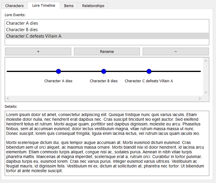 - Character notes